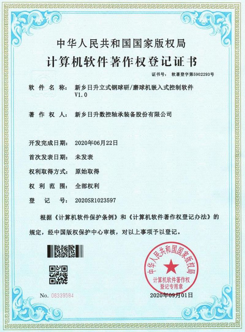 近日,我公司 “新鄉(xiāng)日升立式鋼球研/磨球機(jī)嵌入式控制軟件 V1.0” 獲得國(guó)家版權(quán)局“計(jì)算機(jī)軟件著作權(quán)”登記。 該項(xiàng)軟件主要功能有手動(dòng)操作,自動(dòng)工藝參數(shù)設(shè)定加工,工作壓力自動(dòng)調(diào)整,報(bào)警顯示,設(shè)備點(diǎn)檢等功能。軟件功能完善,性能穩(wěn)定,易于操作,自動(dòng)化程度高,人機(jī)工程好,應(yīng)用廣泛。 該軟件著作權(quán)的登記,可以對(duì)上述機(jī)床的控制程序進(jìn)行充分保護(hù),也將為保持公司在鋼球裝備行業(yè)的領(lǐng)先地位起到積極的作用,從而提高鋼球加工裝備行業(yè)整體自動(dòng)化和智能化程度。