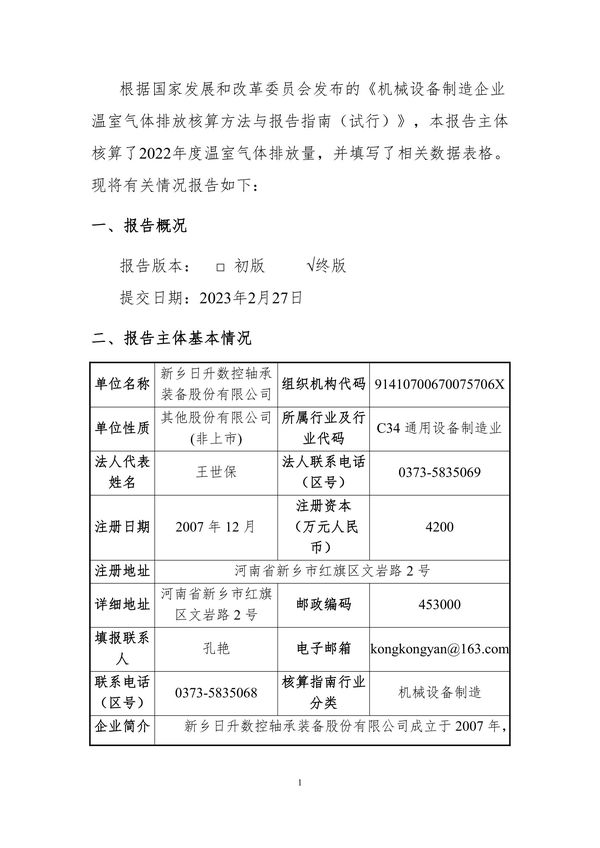 2022年溫室氣體排放核算報告