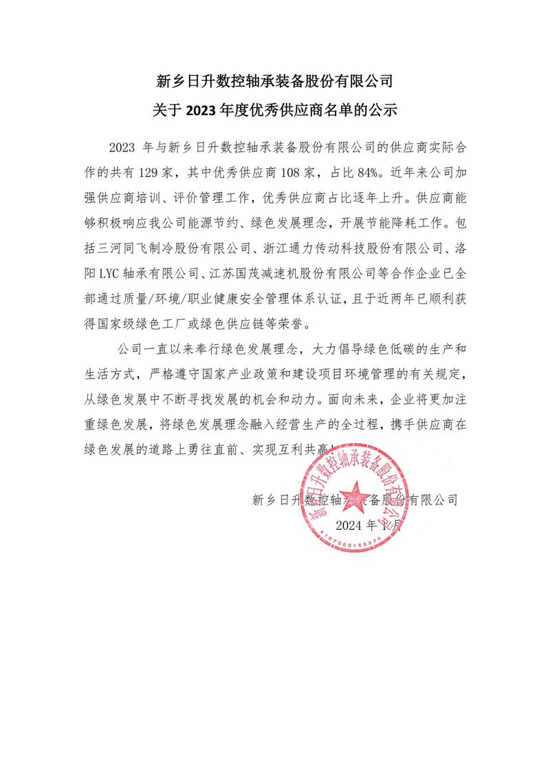 新鄉(xiāng)日升-優(yōu)秀供應商公示