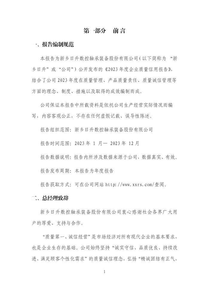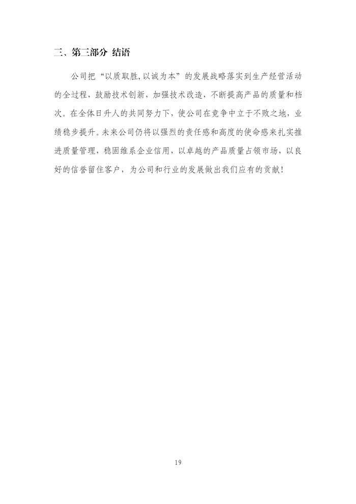 新鄉(xiāng)日升2023年度企業(yè)質(zhì)量信用報(bào)告